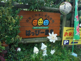 坂を下っていただき道なりに進んでいただきますと、右手に「はっぴー農産」の看板が見えてきます。
